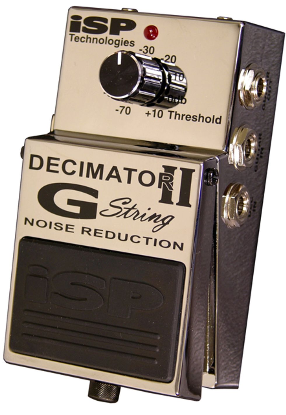 The new Decimator II and Decimator G String II now include a LINK IN and LINK OUT allowing two pedals to be linked via a common 1/8 inch Tip/Sleeve or Tip/Ring/Sleeve phone cord allowing both pedals noise reduction signal processing circuits to track the direct instrument input. With two Decimator II pedals linked the guitarist will get close to the same level of performance available in our professional Decimator ProRack G system in pedal form. This will now allow players to use one block of Decimator between the guitar and input of the amplifier, a second in the effects loop, use dual preamps in a system with a Decimator II after each pre-amp, or implement true stereo noise reduction systems using this link connection. Using the LINK function between two pedals allows a number of options. By using a standard Decimator II between the guitar and the input of the guitar rig and a second standard Decimator II inserted into the effects loop, the player can achieve the same basic performance of the professional Decimator ProRack G. The guitarist can also use a Decimator G String II at the front end of the system and build a true stereo noise reduction system by linking a standard Decimator Il pedal. This allows two totally independent channels of Decimator Noise Reduction, with separate inputs and outputs, to be inserted after a stereo Pre-amp or connected in a stereo guitar rig.
