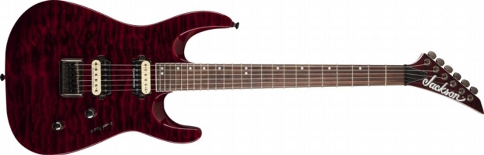 The DK2HT Pro Series features an alder body, bound bolt-on neck (flat sawn) with graphite reinforcement, compound-radius rosewood fingerboard (maple in Pro DK2MHT and Pro DK2MQHT) with 24 jumbo frets, direct-mount Seymour Duncan JB (bridge) and ’59 (neck) humbucking pickups with five-way switching, single volume tone controls, stylish headstock binding, direct-mount Jackson HT-6 hard-tail string-through bridge, locking Jackson tuners and Dunlop locking strap pins. The DK2QHT and DK2MQHT Pro Series offer the same specifications, with the additional feature of a striking 1/8 4A quilt maple cap. The DK2HT is available in Metallic Black; DK2MHT in Metallic Purple and Blue Glow; the DK2QHT in Natural and Transparent Red; and the DK2MQHT in Chlorine Burst and Transparent Red.