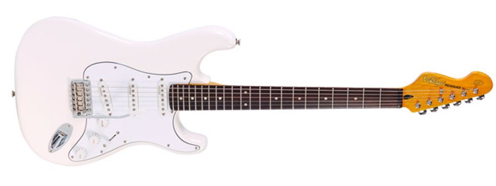 Leeds, England (March 4, 2010) -- John Hornby Skewes & Co. Ltd., introduces the Vintage Fillmore V6JMH. The Fillmore is a right-handed S-style body with a leftie neck. The Vintage Fillmore V6JMH is designed to give a
