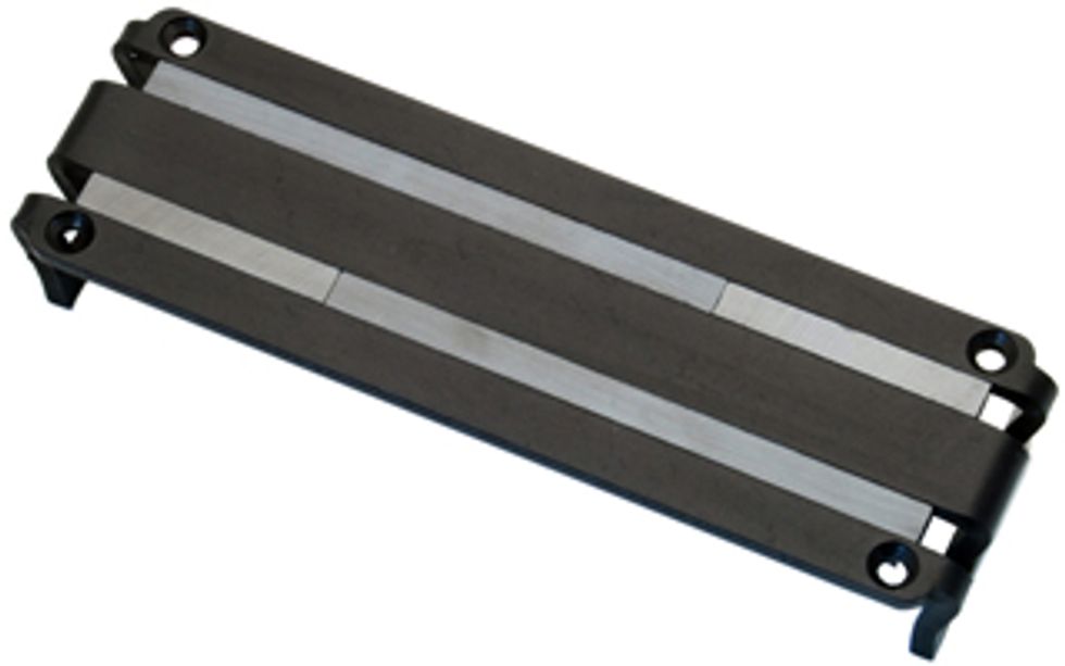 After many requests from players needed a longer version, the new 5.0 models are 5 inches in length. They are intended for use with 9 and 10 string designed guitars. Applications are for straight or fan fretted instruments for maximum string to string coverage of 4.35 inches.