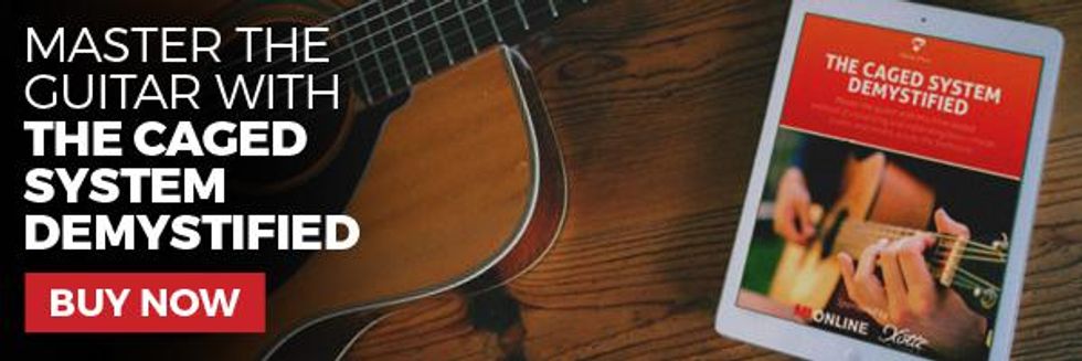 Congratulations, you've mastered the fundamentals of the CAGED system and covered a lot of territory! The CAGED system provides a logical way of visualizing the neck using basic chord shapes you've most likely known for quite some time. But it doesn't stop there: The CAGED system is just as useful for scales and licks. In fact, I think of the CAGED system as five buckets where I can stash fretboard information. New chords, scales, licks, and melodies can all be related to one of the five shapes, and this allows you to integrate this information into your playing quickly and efficiently.