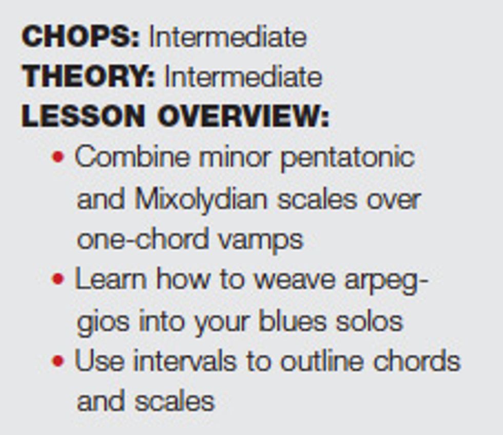 E9 is a great blues/rock chord that you can jam over for hours. All of this lesson’s examples sound great accompanied by the audio track you can download here. (You’ll find it with the online version of this column.) As a soloist, you have a ton of choices over the E9 chord, but we’re going to focus on the E minor pentatonic scale and E Mixolydian mode, both of which work well in this context.