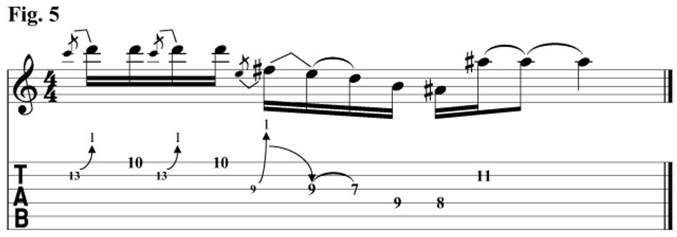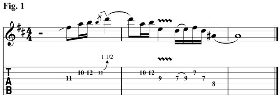 Combining a whole-step and a subsequent half-step bend provides ornamentation to this voice-like melody. Download Example Audio...