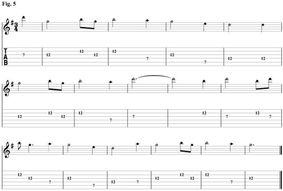 Finally, Figure 5 is the melody line to “Amazing Grace,” all in natural harmonics. Download example audio...