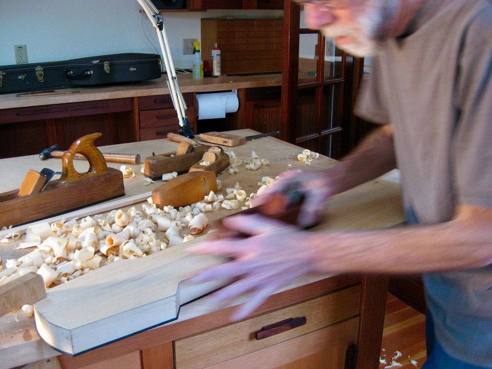 But don’t ask Andersen about Seattle’s local lutherie scene. Like many builders, he’s private, focused, and low key, which for the slow-paced world of lutherie, is an asset. “I’m not a particularly social person,” he says. “There are a number of hobby builders in this area. They get together and have meetings, but I don’t hang out with them. This is my job. I don’t want to leave my job and then go have a potluck and talk about guitar making. I have been thinking about guitar making all day.”