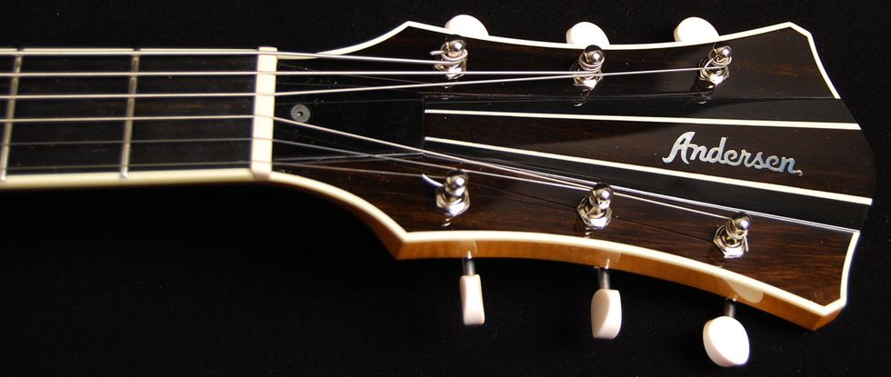 A headstock from one of Andersen’s custom one-off designs.