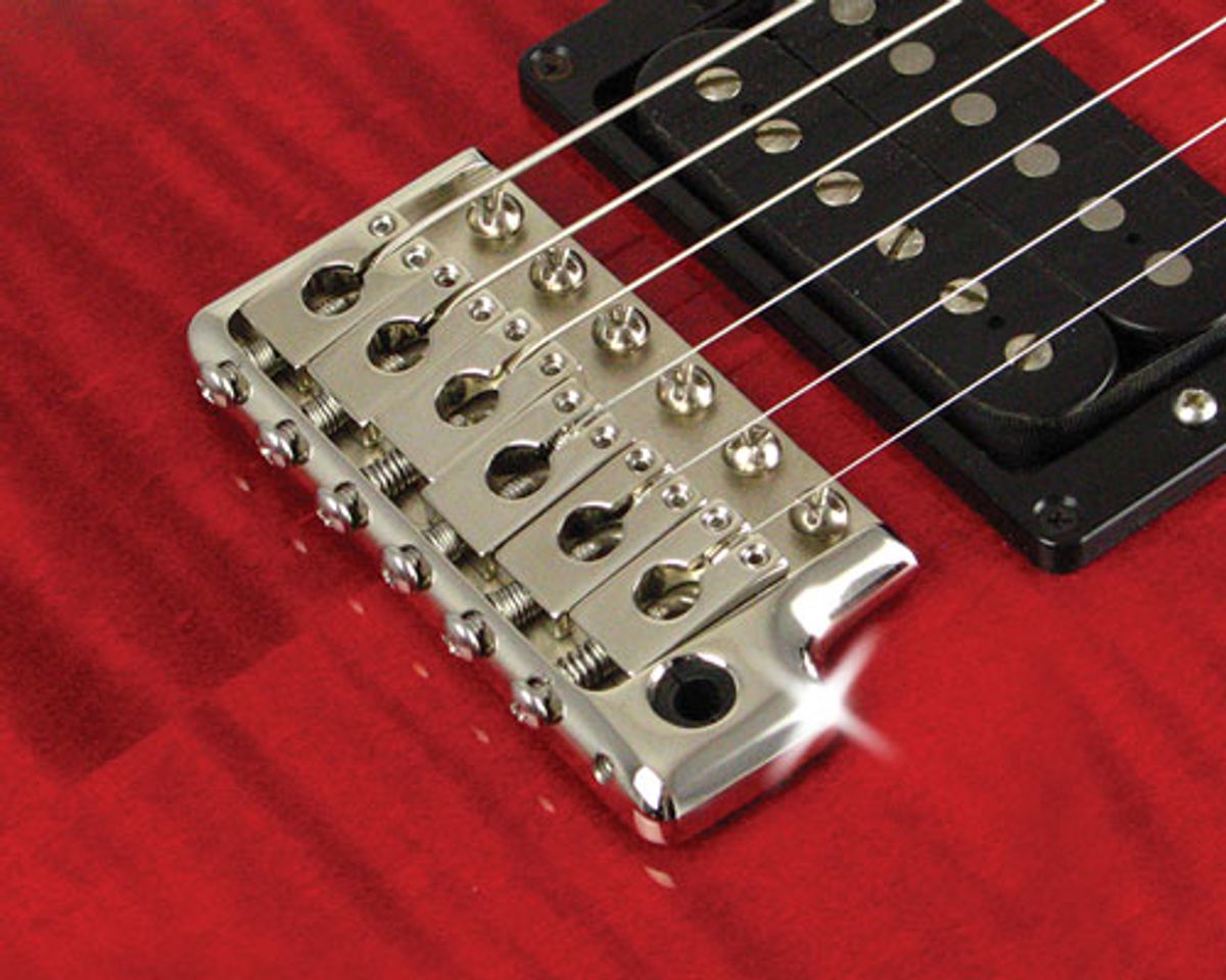 Bedford, NH (May 8, 2015) -- The newly released bridge fits all PRS Guitars models' (USA, S2, SE) Six-Hole mount. One piece cast bridge machined to the original 1985 specifications for authentic PRS sound, with increased tone and sustain! Polished side walls give a smooth, comfortable yet vintage look and feel. Walls also prevent any side movement of saddles, improving tuning and playability. Notice the back edge is radiused, just like the original bridges were in 1985! Saddles are also precision machined and highly polished to the original 1985 specs! Push-In Arm stays where you put it every time. Bridge and Mounting Screws have hidden knife edge so that guitar returns to “Zero Position” and plays in tune. Has that smooth, silky feel that has made this bridge legendary. Individual saddles with individual height and intonation. Assembly comes complete with arm, claw and all necessary mounting hardware. Manufactured to original 1985 specs by the original manufacturer – MannMade USA (formerly Mil-Com Industries, Inc).