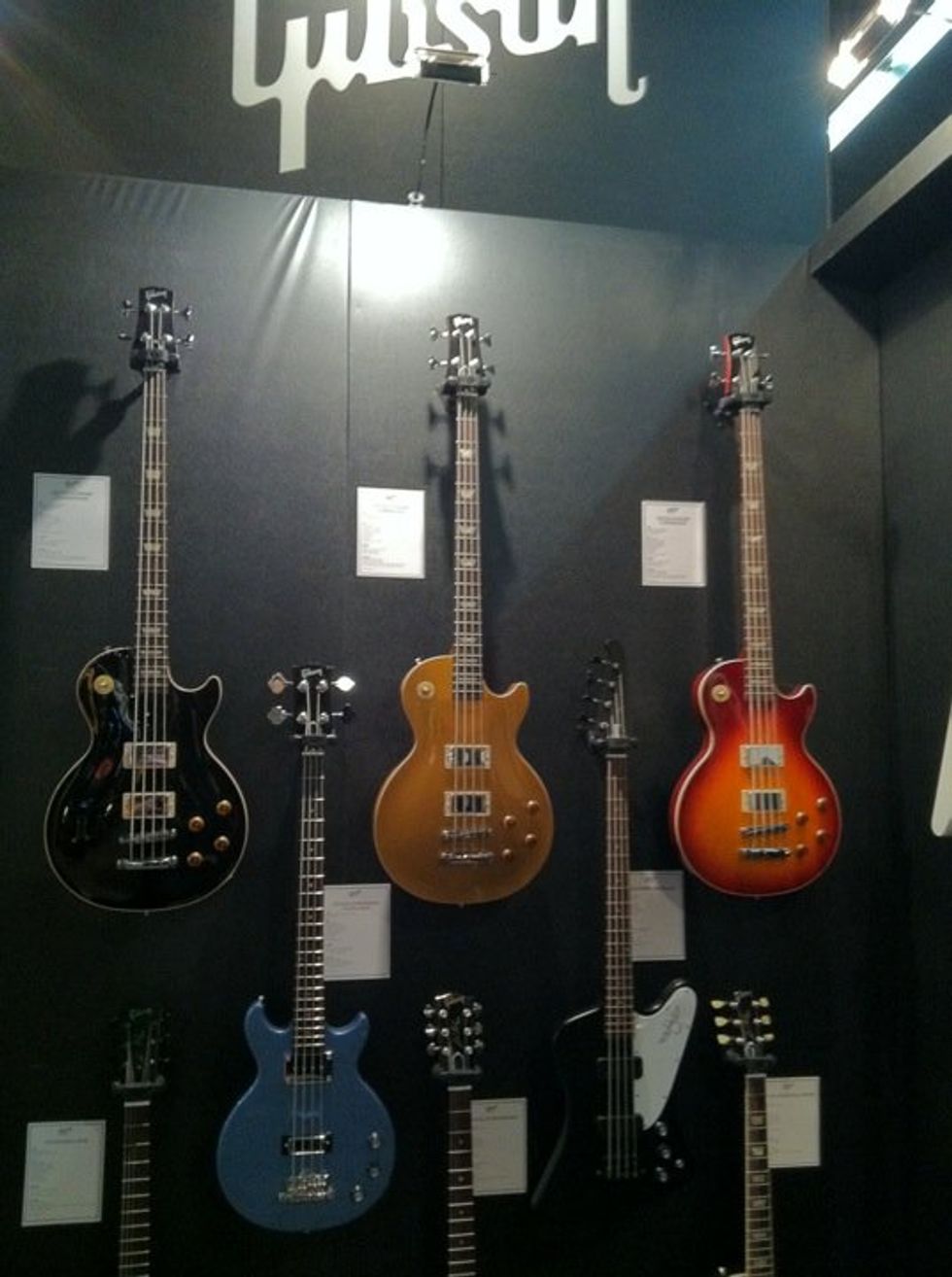 Bass for your face in Frankfurt....Les Paul Standard basses, a Les Paul Jr. Cutaway bass with 30" scale neck, and Thunderbird Short Scale bass.