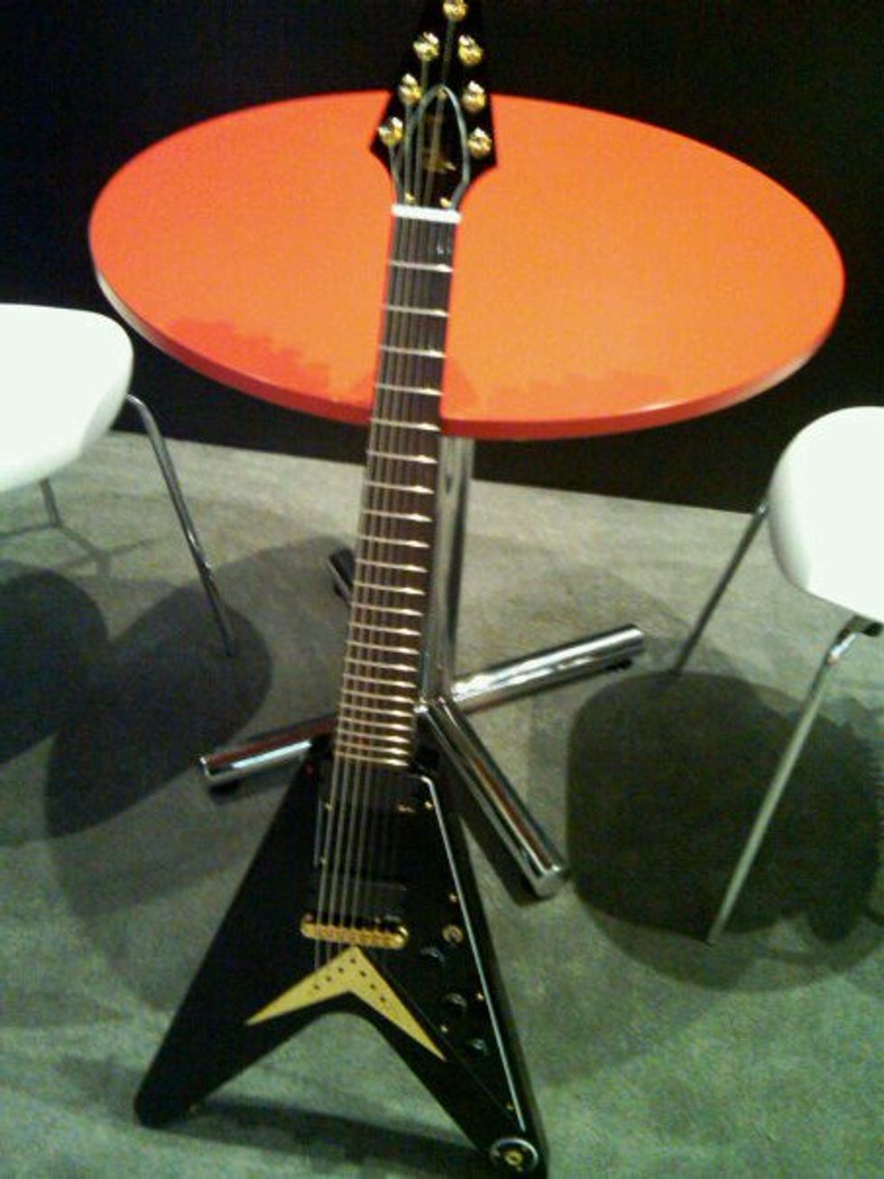 New Gibson USA Flying V 7-string with mahogany body and EMG 707 neck and 81-7 bridge pickups.
