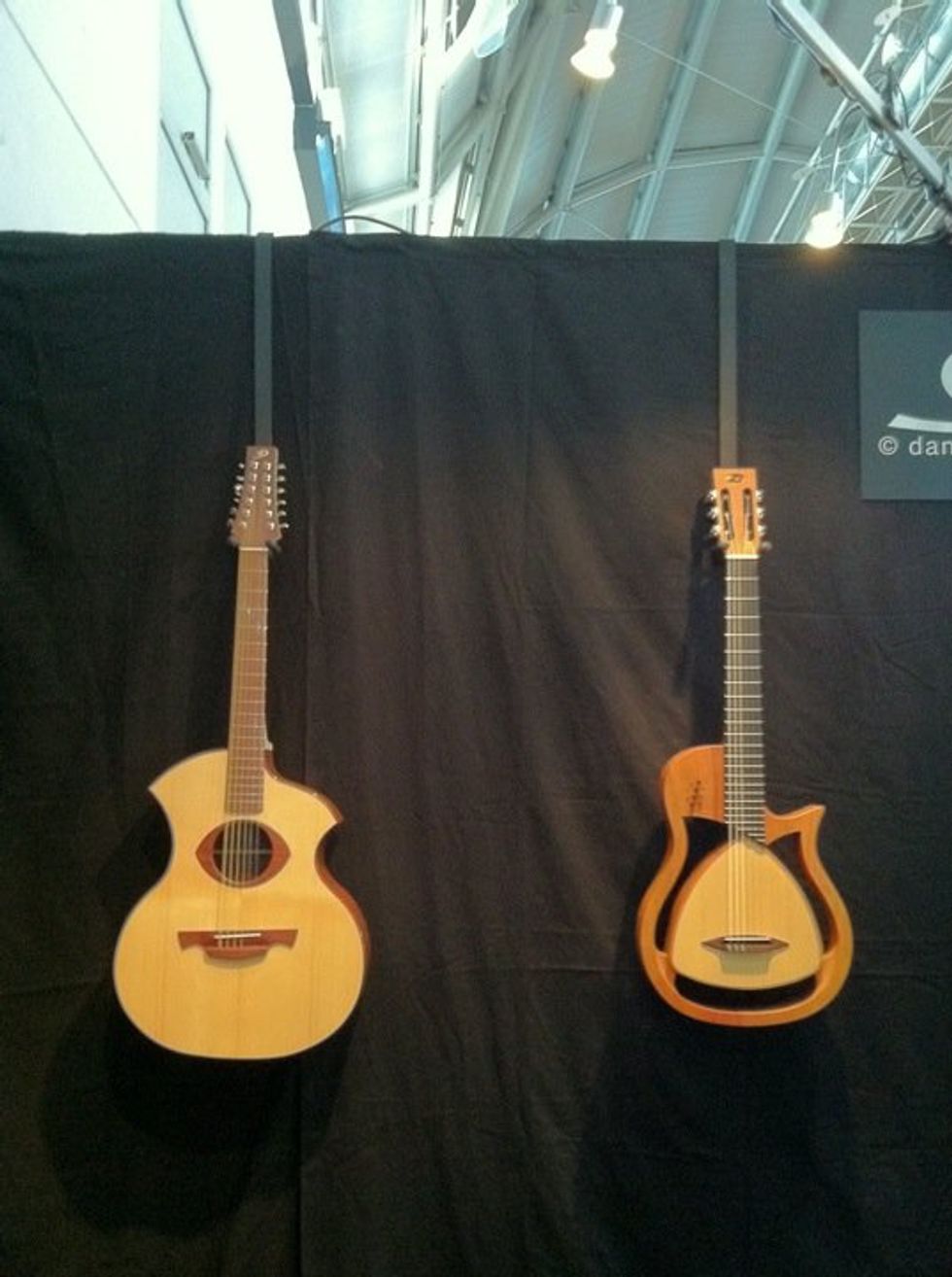 Swiss builder Danou Guitars unveiled this beautiful 12 string and a pearwood-and-spruce acoustic electric with Schertler electronics.