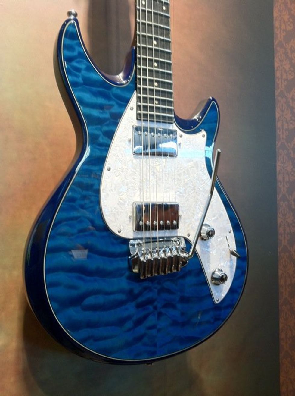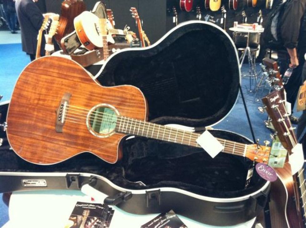Taylor's Double Cutaway showed up at Musikmesse 2011 rocking new colors like this blue maple top.