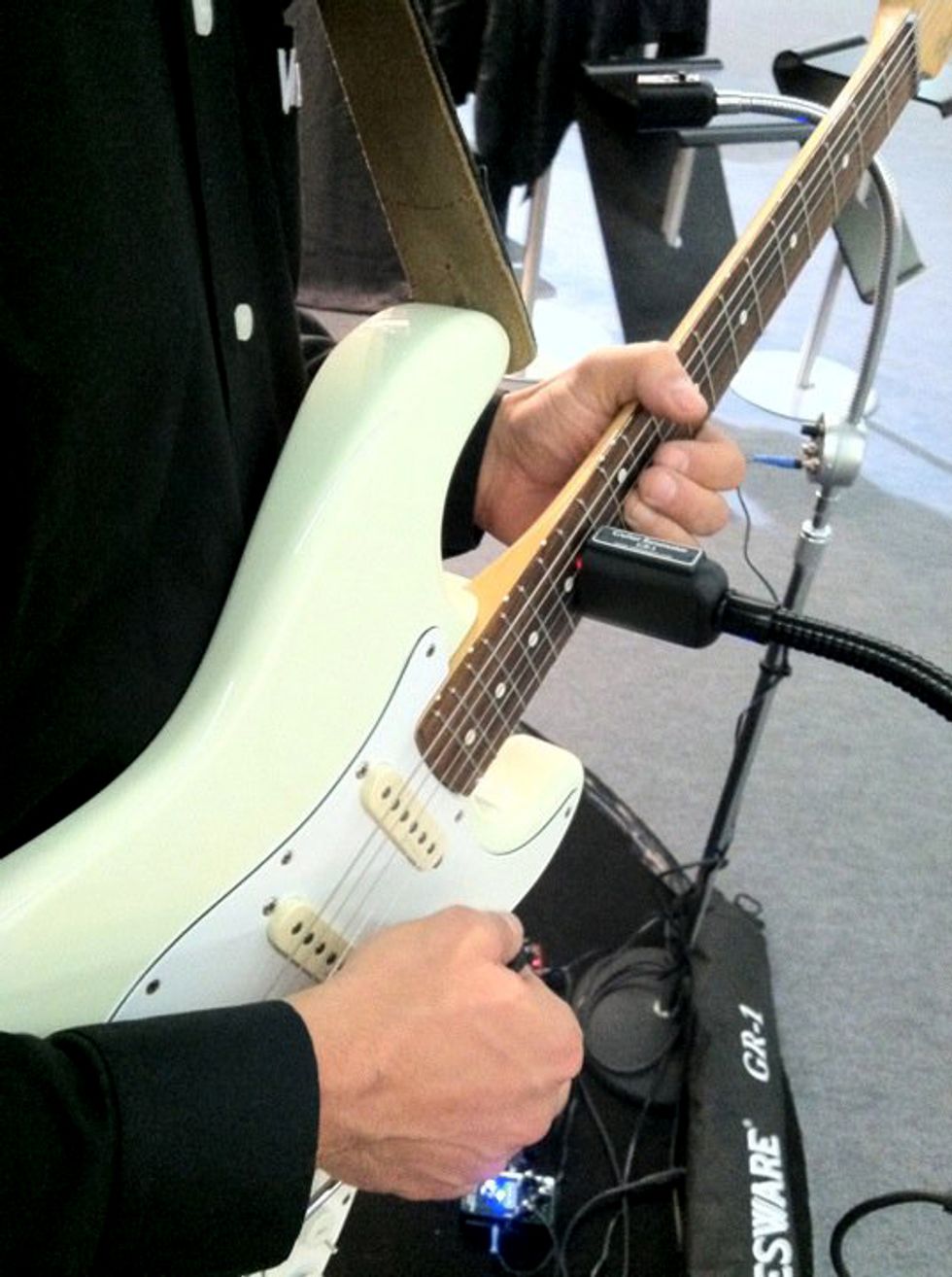 The Vibesware sustainer enables you to achieve feedback and sustain effects while leaving your pick hand free. It also vibrates multiple strings simultaneously. In the running for best space rock accessory at Musikmesse!