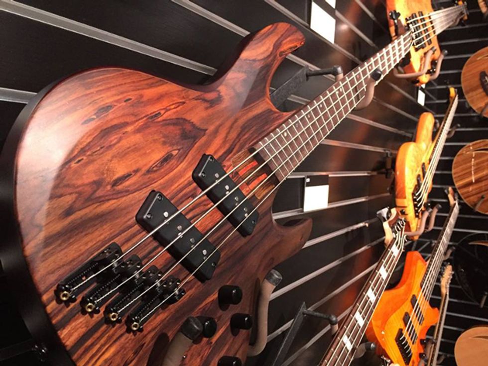 Got fanned frets? The new LTD B-1004SE Multi-Scale from ESP Guitars does, and it made its debut here at NAMM The 36.25" to 34"-scale bass features a swamp-ash body with a rosewood top, a 5-piece wenge/bubinga neck topped with a rosewood fretboard, a Hipshot Solo bridge, and Gotoh tuners. For electronics, the B-1004SE is packed with a pair of Nordstrand Big Splits that are run by the ESP-designed ABQ-3MS 3-band EQ.
