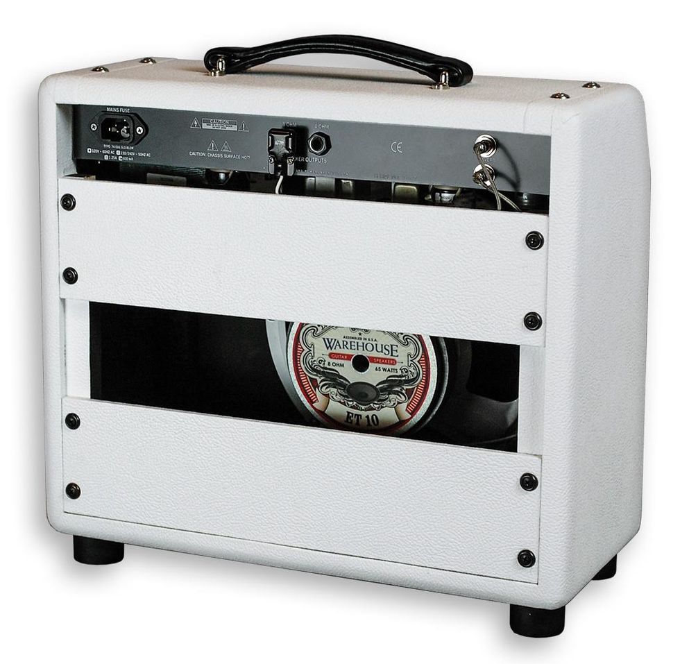 Operating in Cathode Bias on a single JJ 6V6GT output tube; the new compact, 5 watt combos are a small format, light weight, low powered 110 combo amplifier that possesses professional grade tone, high headroom and maximum flexibility. Loaded with a 10” speaker by American boutique speaker company, WGS Speakers, the Spanky JR 6VEL is Cathode Bias and is compatible with virtually every octal-based power and rectifier tube. The Spanky JR 6VEL utilizes one each octal-based power and rectifier tube socket with supported power tubes including 6V6 (standard), EL34, 6L6, 5881, KT66. Supported rectifier tubes include 5Y3 (standard), 5U4, and 5AR4/GZ34. Other features include an American voiced preamp, 3-band EQ, and a tube driven spring reverb that features FLOOD MODE - turning the unit into a stand-alone all-wet reverb effect.
