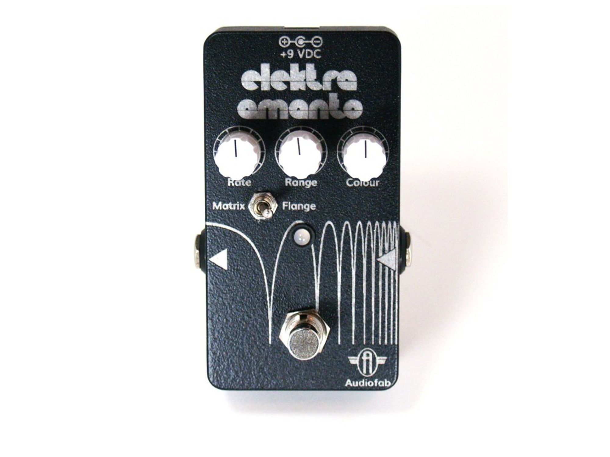Audiofab’s Elektra Amanto captures the essence of classic flanger tones heard from iconic players such as Andy Summers and David Gilmour, but with modern features. With its wide sweep and straightforward control set, the pedal opens new sonic possibilities for players of all styles. And unlike other wide sweep designs that require higher power supply voltages, the Elektra Amanto operates on a standard 9-volt pedal power supply, making it accessible and convenient for all guitarists.