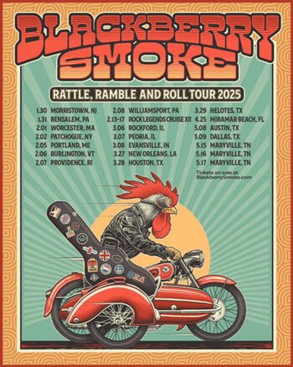 Blackberry Smoke will embark on their Rattle, Ramble and Roll Tour in 2025, featuring stops at Worcester’s Palladium, Burlington’s The Flynn, New Orleans’ The Fillmore, Austin’s ACL Live at the Moody Theater, among many others.