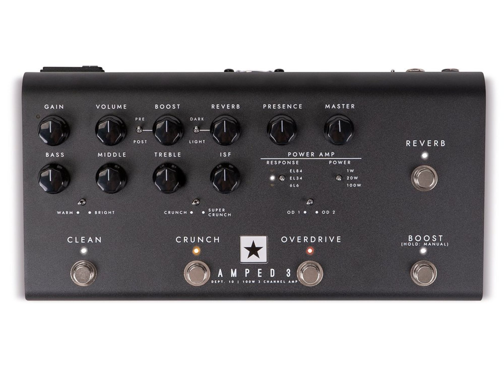 AMPED 3 is a 100 Watt high gain, multi-channel pedal power amplifier with user storable presets along with built-in Boost and Reverb.