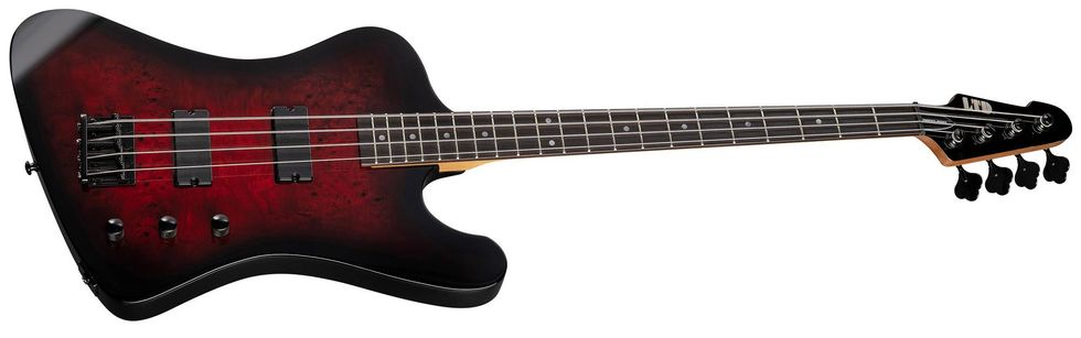 It’s a similar story for the LTD Surveyor-204DX, which takes a classic ESP bass shape and offers it with great LTD quality and high value. Its features include a lightweight, resonant poplar body with a burled poplar top, roasted maple neck with rosewood fingerboard, LTD vintage tuners, and a set of ESP LJB (bridge) and LPD (neck) pickups. It’s available in Black Burst and Red Burst finishes.