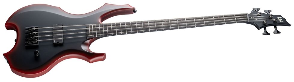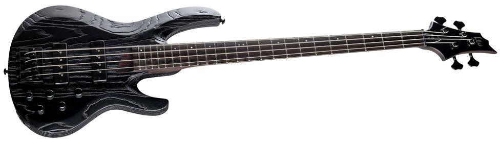 Two new Signature Series basses also made their debut at the 2024 NAMM Show. The LTD FL-4 is the new signature bass for Fred Leclercq, bass player for German thrash metal band Kreator. The FL-4’s body shape is an adaptation of ESP’s Forest/F shape, but with a cutout at the tail end. It has an equally distinctive finish, with Satin Black that bursts to Red on the front and back edges of its body. The FL-4 features neck-thru-body construction at 34” scale, pairing an alder body with an extra-thin five-piece maple/purpleheart neck and Macassar ebony fingerboard with black binding, red offset dot inlays, and 24 extra-jumbo stainless steel frets. Its sound is driven by a single active EMG 35P pickup. Other components of the FL-4 include a Hipshot A Style bridge and Grover mini-tuners. The FL-4 includes a deluxe ESP hardshell case.