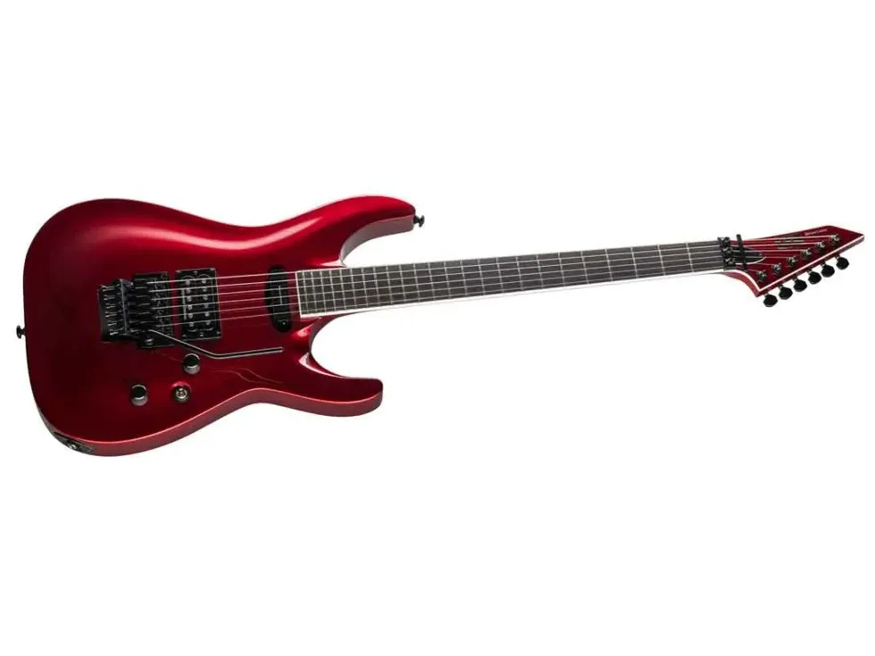 The Horizon Custom ’87 takes the archtop body of the ESP Horizon, and offers it with minimal adornment for unencumbered playability. It offers neck-thru-body construction at 25.5” scale, pairing an alder body and an extra-thin three-piece maple neck. The Horizon Custom ’87 features a Macassar ebony fingerboard with 24 extra-jumbo frets and no inlays (using side position dots, like the 1980s Horizon version). Its components include a Floyd Rose 1000 double-locking tremolo, a Seymour Duncan TB-5 Custom Trembucker pickup in the bridge, and a Seymour Duncan Hot Rails pickup in the neck position. Coil spitting for single-coil tones on either or both pickups is available via push-pull controls on the volume and tone knobs.