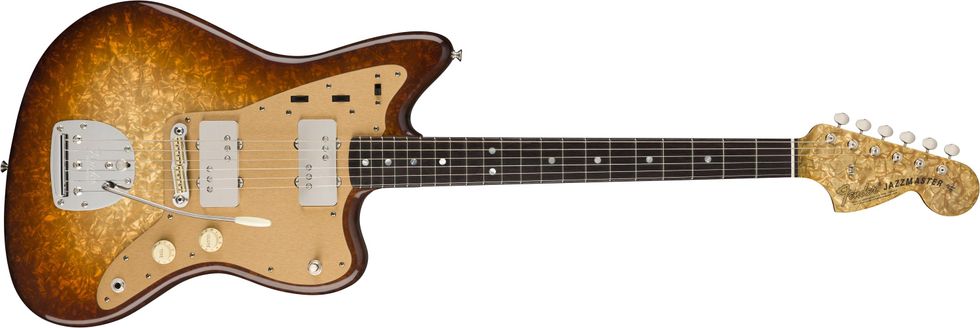 Motivated by all things pearloid and with an eagerness to work with founding Fender Custom Shop Master Builder, Fred Stuart, the duo created the Prestige Moto Jazzmaster, Bronze Sunburst. Highlights include a 2-piece select ash body with Moto covering by Fred Stuart and a roasted quartersawn maple neck with '62 style Jazzmaster back-shape. Finish includes Jay Nelson paintwork. $15,000.00 USD.