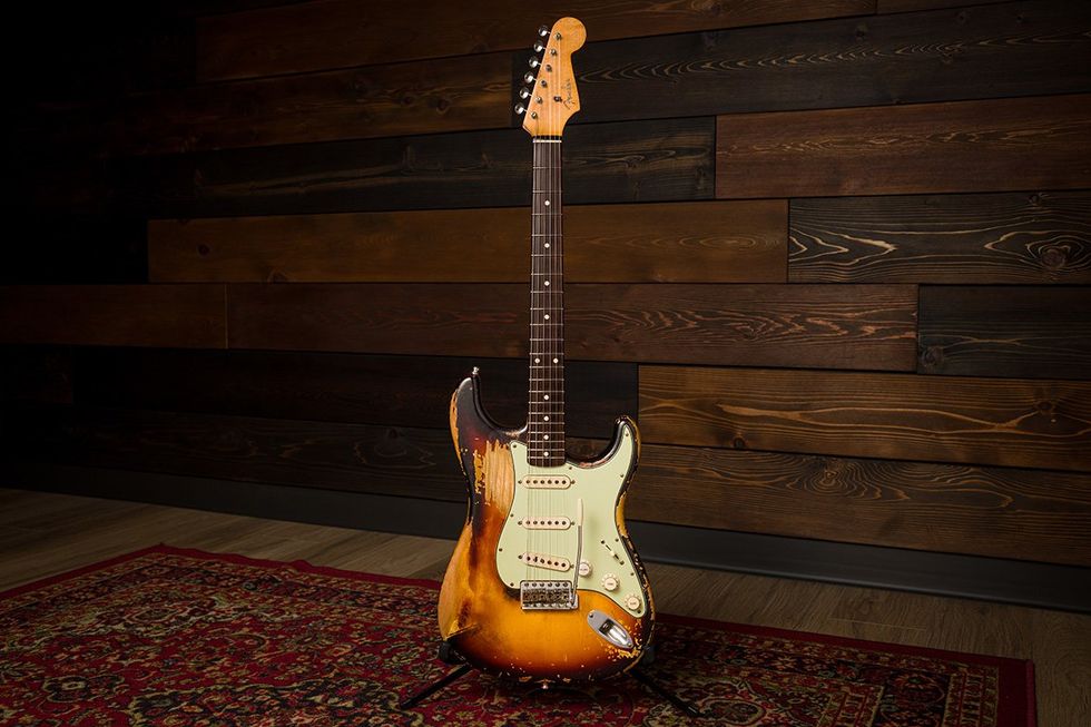The masterbuilt limited-edition John Frusciante Stratocaster is a meticulously crafted replica of Frusciante’s beloved 1962 sunburst Strat.