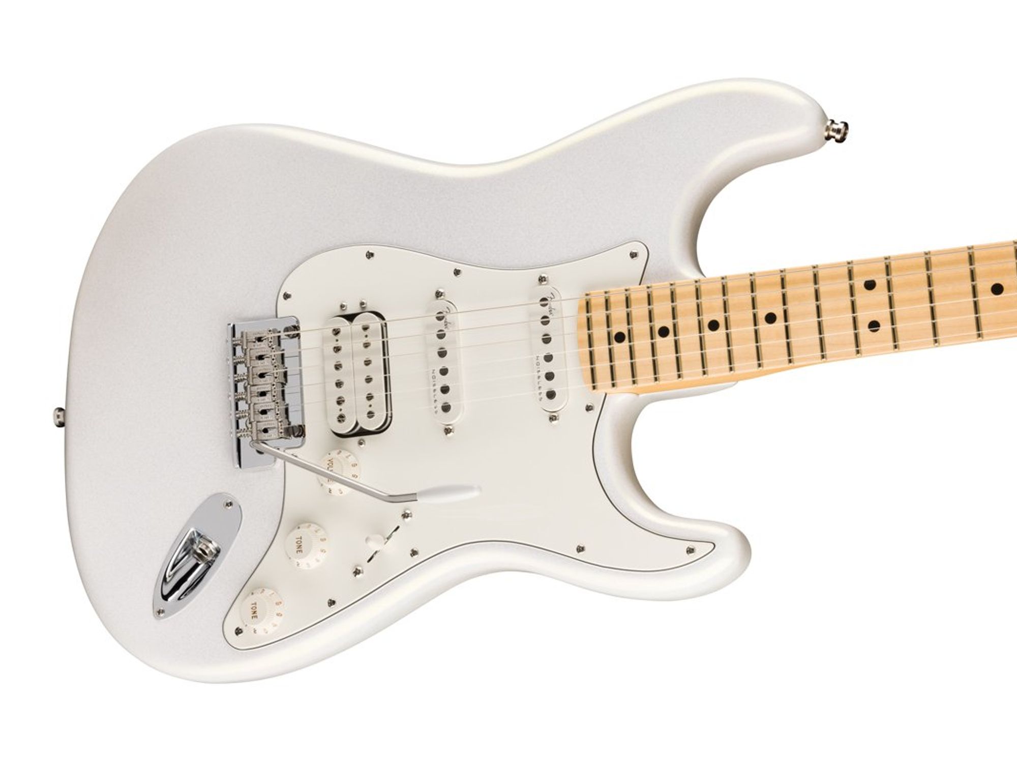 Known for his preference for individual notes and riffs that stand out even within chords, the Juanes Stratocaster captures his unique sound with custom-voiced noiseless single-coil pickups to achieve clear tones and note distinction. His left and right-hand technique, combined with the use of a Mid-Boost Preamp with an S-1 Switch and a modern-voiced humbucker pickup, allows his guitar playing to act as a secondary voice, sending a powerful message alongside his vocal lyrics. The mid-boost preamp amplifies his sound and highlights the right midrange frequencies, making his chord changes stand out and ensuring his music resonates from verse to chorus to bridge and beyond. With its alder body featuring a stunning, moon-reminiscent "Luna White" Satin finish, an ode to his oldest daughter, Luna, which means “moon” in Spanish, this guitar exudes elegance and style.