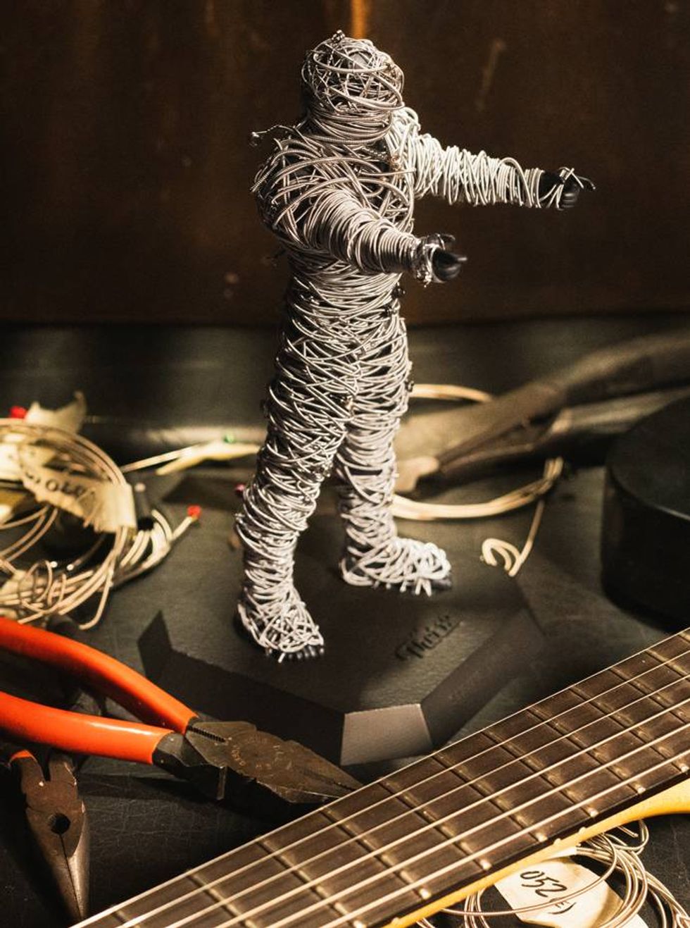 The 8.75” mummy figure, which features 139 pre-drilled holes that fit both guitar and bass strings, arrives unwrapped and ready to be customized. Musicians can then personalize it however they like by adding their old strings to create a completely unique artifact that reflects their own playing history, making each String Thing® a genuinely one-of-a-kind creation.