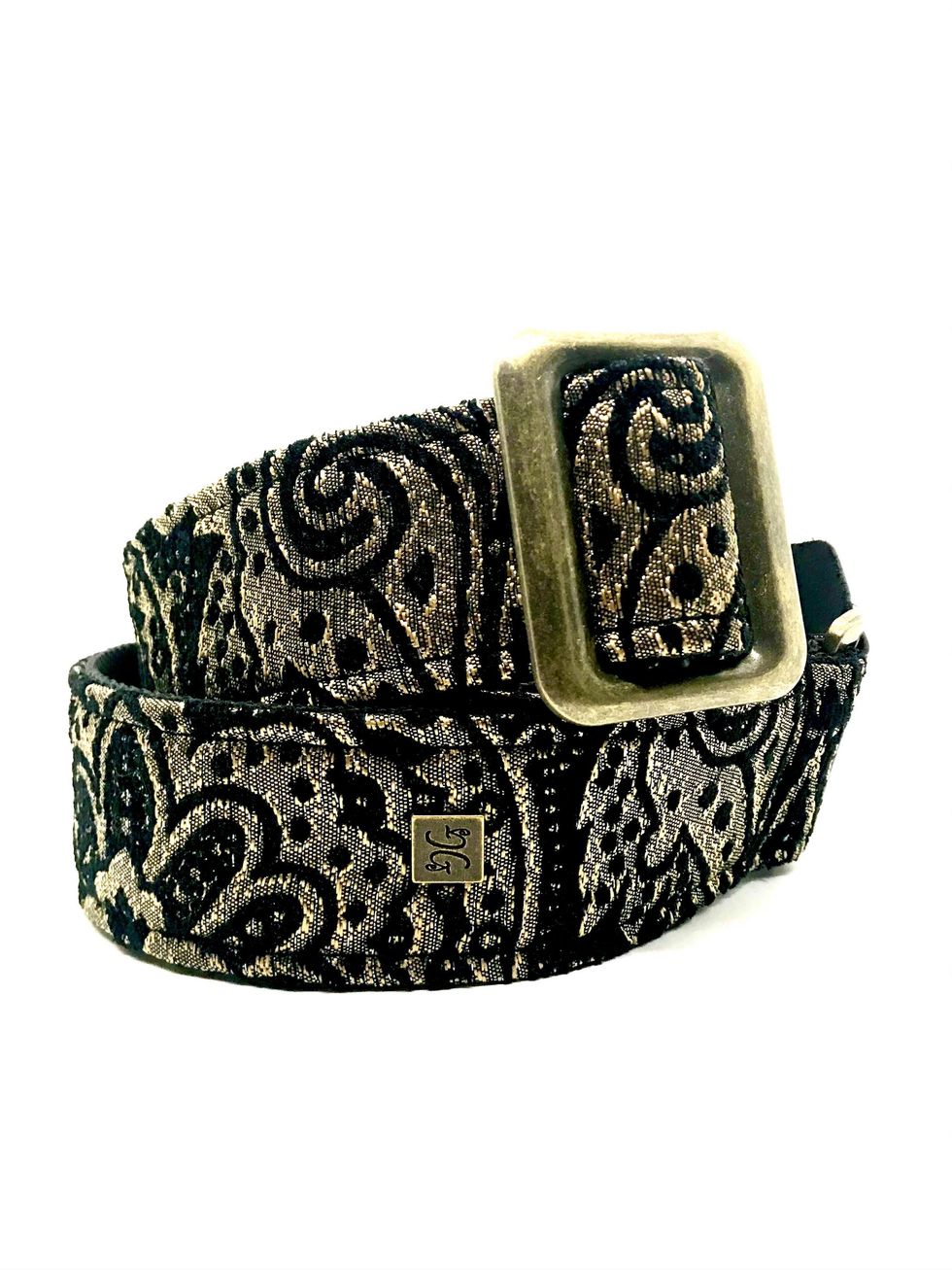 The Goldie Collection is all the classic gold and black glamour in your choice of two prints. Made with heavy brocade facing, you can choose between a diamond pattern, and a classic paisley. This is classic rock glam! Like all Get'm Get'm Straps, both collections are 2" in width, and are made in our extra long 72" length so you can wear them low. They both feature strong welded metal hardware, free from lead and poisons, and are lined with quality nylon webbing for durability and comfort. All Get'm Get'm Straps also use real leather tips so you can trust your guitar is secure, even with the heaviest rocking out.