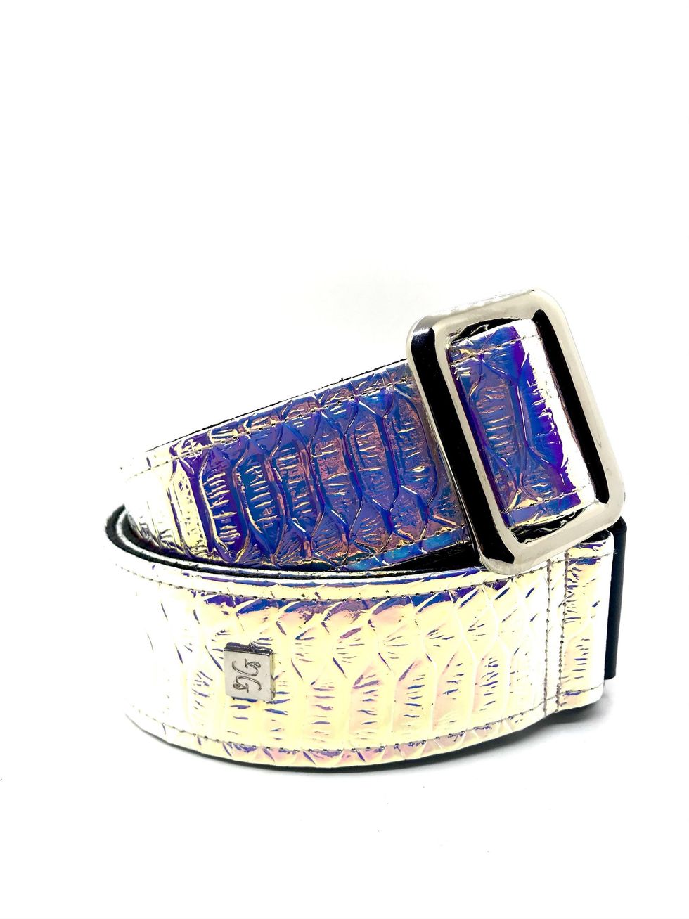 The first of the new collections is the Metallic Collection. This collection features the timeless snakeskin texture, but in a modern metallic fabric in your choice of silver or gold. The silver has an icy blue and purple sheen that reflects many colors as the light changes. The gold shines with shades of green and copper as the light changes. Both are awesome and highly dynamic on stage!