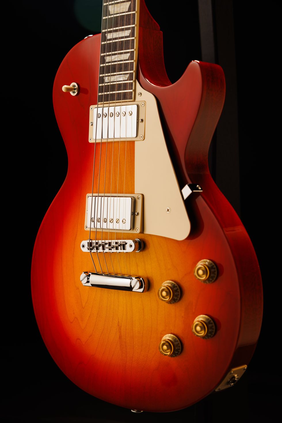 Now, the Les Paul Studio has been reimagined. It features an Ultra-Modern weight-relieved mahogany body, making it lighter and more comfortable to play, no matter how long the gig or jam session runs. The carved, plain maple cap adds brightness and definition to the overall tone and combines perfectly with the warmth and midrange punch from the mahogany body for that legendary Les Paul sound that has been featured on countless hit recordings and on concert stages worldwide. The glued-in mahogany neck provides rock-solid coupling between the neck and body for increased resonance and sustain. The neck features a traditional heel and a fast-playing SlimTaper profile, and it is capped with an abound rosewood fretboard that is equipped with acrylic trapezoid inlays and 22 medium jumbo frets. The 12” fretboard radius makes both rhythm chording and lead string bending equally effortless, andyou’re going to love how this instrument feels in your hands. The Vintage Deluxe tuners with Keystone buttons add to the guitar’s classic visual appeal, and together with the fully adjustable aluminum Nashville Tune-O-Matic bridge, lightweight aluminum Stop Bar tailpiece, andGraph Tech® nut, help to keep the tuning stability nice and solid so you can spend more time playing and less time tuning. The Gibson Les Paul Studio is offered in an Ebony, BlueberryBurst, Wine Red, and CherrySunburst gloss nitrocellulose lacquer finishes and arrives with an included soft-shell guitar case.
