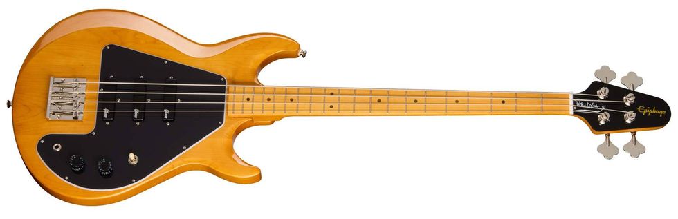 The Epiphone Mike Dirnt Grabber G-3 bass carries a street price of $1299.00. The Silverburst finish mode is available worldwide. The Natural finish is available only through Gibson Garages and Epiphone.com.