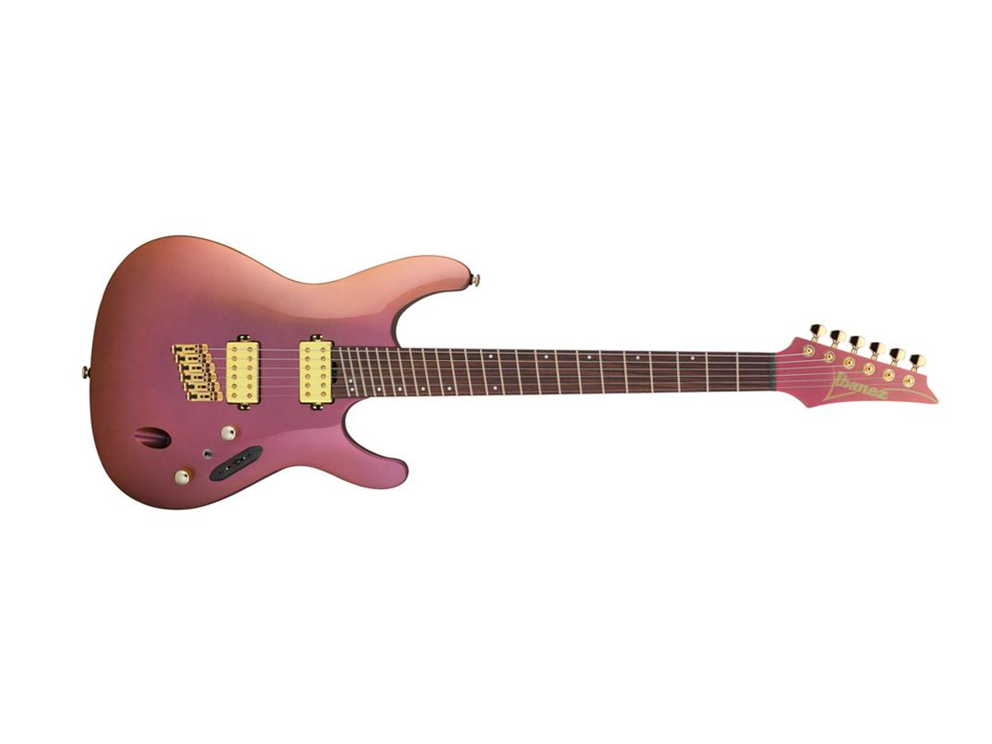 New for 2023, Ibanez has unveiled the new SML721, part of the new Axe Design Lab series. This new instrument is based on the venerable S body shape with several features that make it an exciting, modern interpretation of the S. The central defining feature of this guitar is the use of what Ibanez refers to as “light” multi-scale. Visually, this presents as the first fret being parallel with the nut, with the frets gradually tilting inward as one moved further up the neck. The purpose of this design is not to facilitate drop tuning as it is with other multi-scale designs, but to deliver better string-to-string tension and improved playability in standard tuning. The guitar is also equipped with the same Q58 humbuckers found on the Q series as well as the Dyna-MIX10 switching system, making this model highly versatile from a tonal standpoint. Other notable features include a Rosewood fretboard, Luminescent side dot inlays, Gotoh MG-T locking machine heads, and an eye-capturing Rose Gold Chameleon finish.