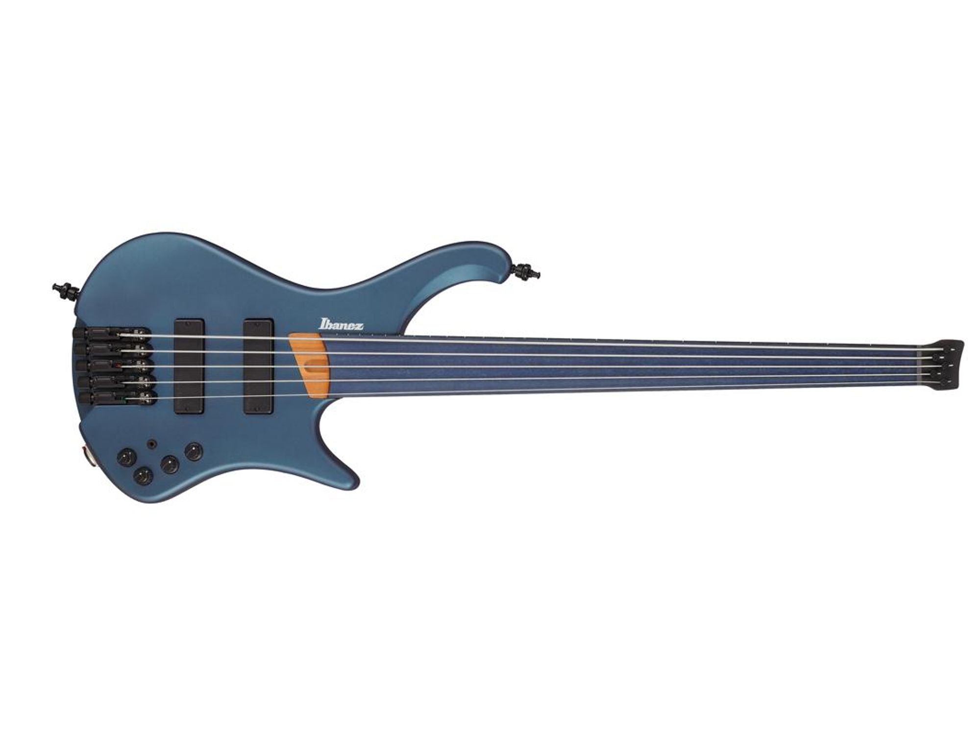 New for 2023, Ibanez has introduced the latest addition to its EHB lineup of headless basses, the EHB1005F. This bass shares a largely similar feature set with that of the EHB1000 series. It’s equipped with a chambered AmericanBasswood body, a Roasted Maple/Walnut neck, Bartolini BH2 pickups, luminescent side dots, and a Vari-Mid three-band EQ. However, the instrument is the first-ever fretless EHB. This bass is not only unique in its function, but it’s also one of the more unique-looking EHBs. This distinctive look comes from the combination of a blue Richlite fretboard and a brand-new Arctic Ocean Matte finish. Each component plays off the other, creating an uncommon and attention-grabbing aesthetic. This new design combines the modern features and benefits of the EHB series with the artistic dynamics and expressive nature of the fretless bass.