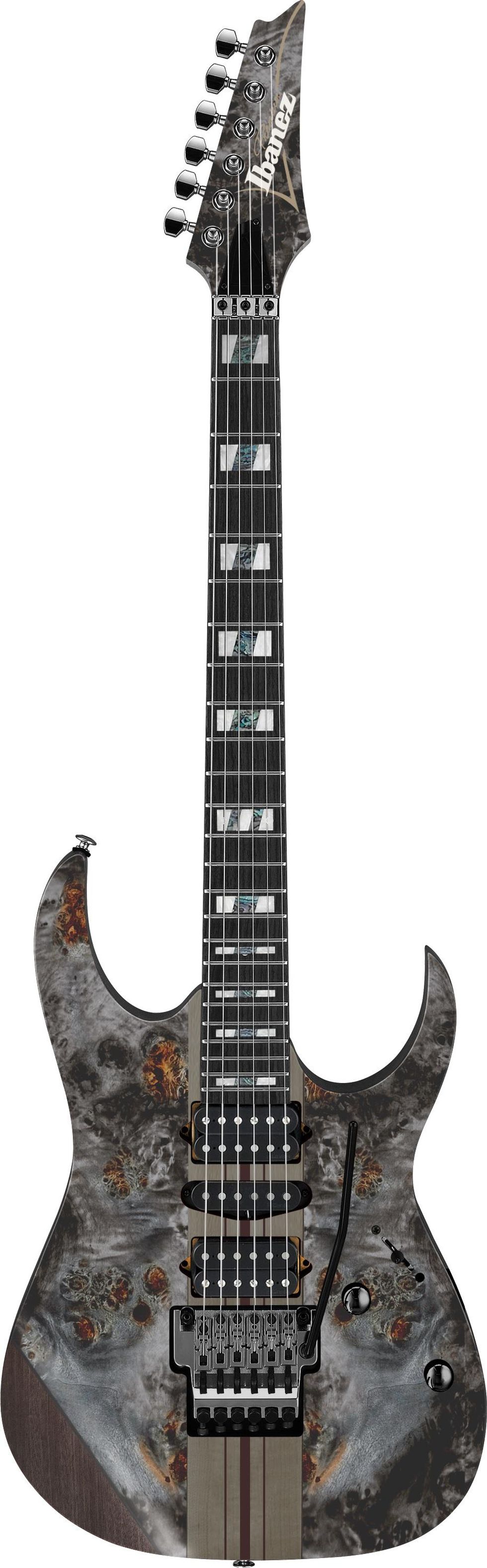 For its new-for-2022 electric-guitar lineup, Ibanez announces three revamped RG Premium models—the RGT1220PB, the RGT1221PB, and the RGT1270PB (shown)— as well as three new AZ Premium models—the AZ47P1QM (shown) and AZ42P1 6-strings and the AZ427P1PB 7-string —with three “firsts” for the series: ebony fretboards, H-S-H pickup configurations, and DiMarzio pickups.