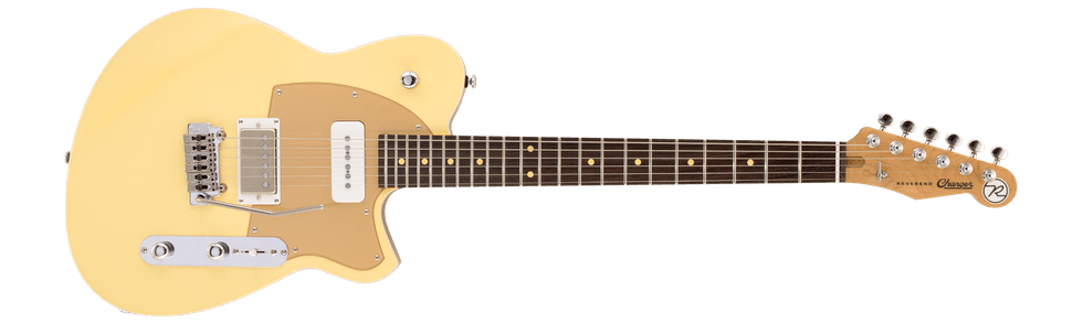 Bold new top colors and backsprayed pickguards create a striking look, while the transparent brown backs add a touch of high-end class. A new Charger headstock logo completes the concept. The Charger Series guitars are modern guitars with classic sensibility, offering the high performance and timeless style you expect from Reverend Guitars.