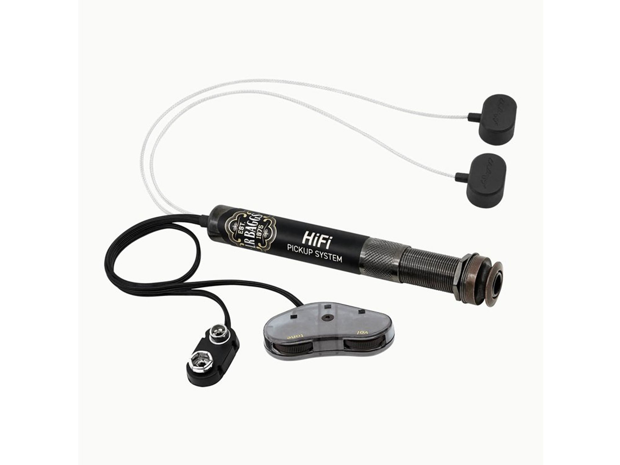 One of the HiFi’s most notable features is the all-discrete, high-fidelity endpin preamp, which ensures excellent audio quality. In addition, the HiFi is equipped with prewired bridge plate transducers and soundhole-mounted volume and tone controls. The installation process for the HiFi is simplified thanks to the peel-and-stick method and installation jig to help with optimal placement. The HiFi runs on a single 9V battery, which boasts an impressive battery life of over 700 hours.