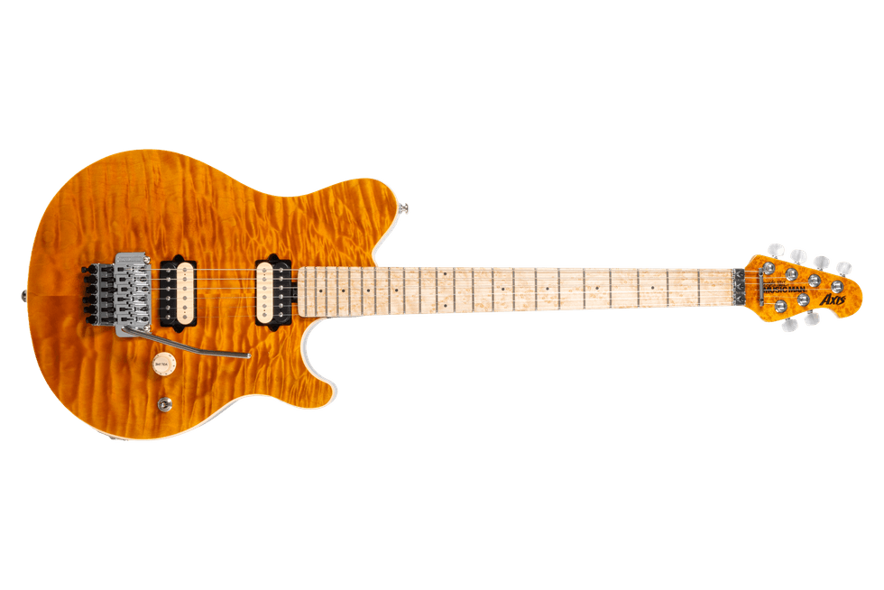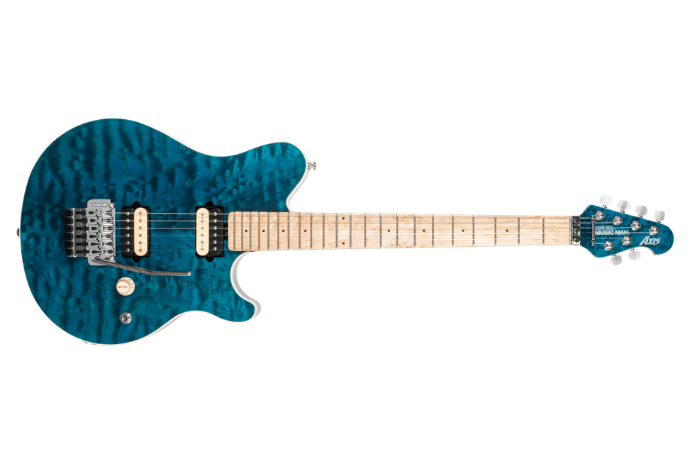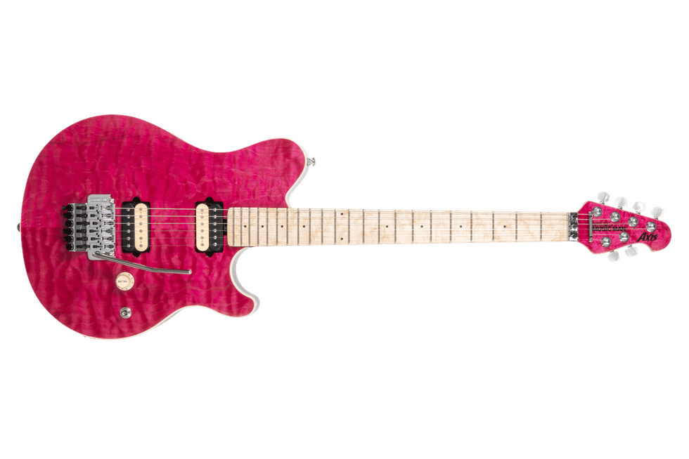Introducing the 30th Anniversary Axis guitar. To mark 30 years of the Axis, we’re revisiting the translucent finishes that defined its 1996 debut—Translucent Gold, Black, Pink, Red, Blue, and Purple—applied to hand-stained quilt maple tops and paired with black, lightly sparkled backs that subtly echo each color. Each guitar features a figured maple neck with stainless steel frets, glow-in-the-dark side dots, the original asymmetrical neck carve, and the sought-after DiMarzio® custom-wound pickups that helped define the Axis feel and sound. Finished with a color-matched headstock face, a 30th Anniversary Axis logo on the back, and limited to 90 Gold, 60 Black, Pink, and Purple, and 30 Blue and Red instruments worldwide, every guitar ships with a certificate of authenticity and a deluxe Music Man® hardshell case.