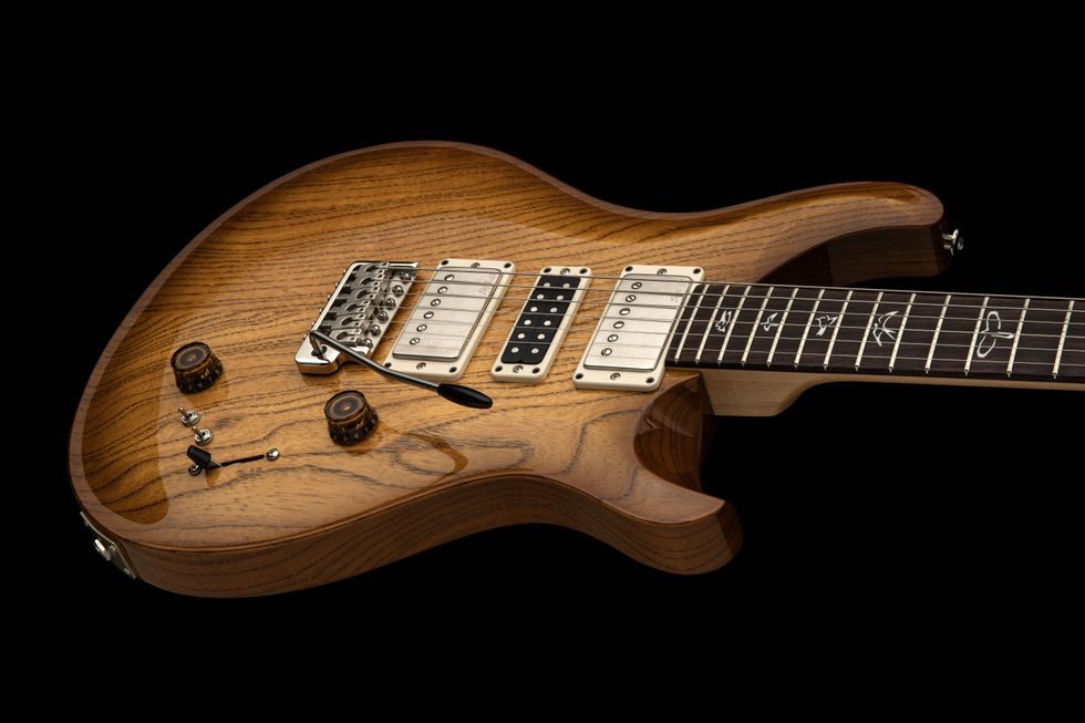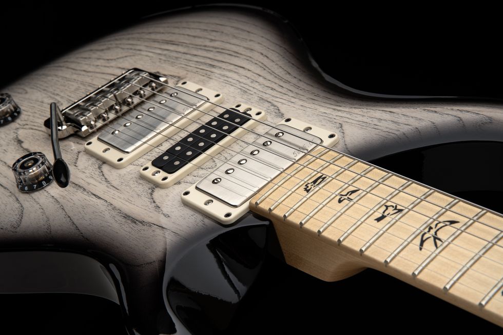 The Swamp Ash Special bolt-on model is also making a comeback for 2025 but with an updated electronics layout. Its swamp ash body is equipped with a versatile hum/“single”/hum pickup configuration. Two 58/15 LT pickups flank a PRS Narrowfield in the middle position, which adds a single-coil bite – without the hum. Paired with a volume, tone, 5-way blade switch, and dual mini-toggle coil-tap switches (for the first time on this model), the Swamp Ash Special has a total of twelve sound combinations. Overall, the PRS Swamp Ash Special features tight low-end, bright but mellow high-end, and a welcome twangy tone that can reach “hot country,” blues and jazz territory.