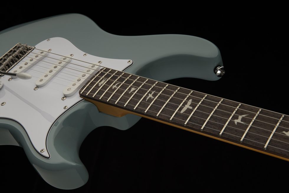 PRS Guitars and John Mayer officially announce the PRS SE Silver Sky, an affordable version of the original with PRS trademark bird inlays and three single-coil pickups.