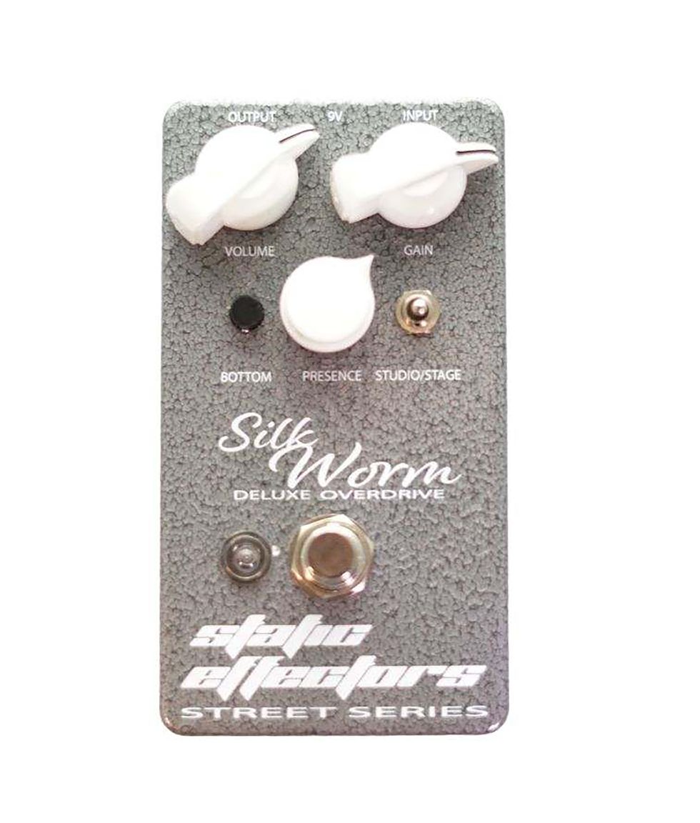 The Silk Worm Deluxe -- along with its standard Volume/Gain/Tone controls -- has a Bottom trim pot to dial in "just the right amount of thud with no mud at all: it’s felt more than heard." It also offers a Studio/Stage diode switch that allows you to select three levels of compression.