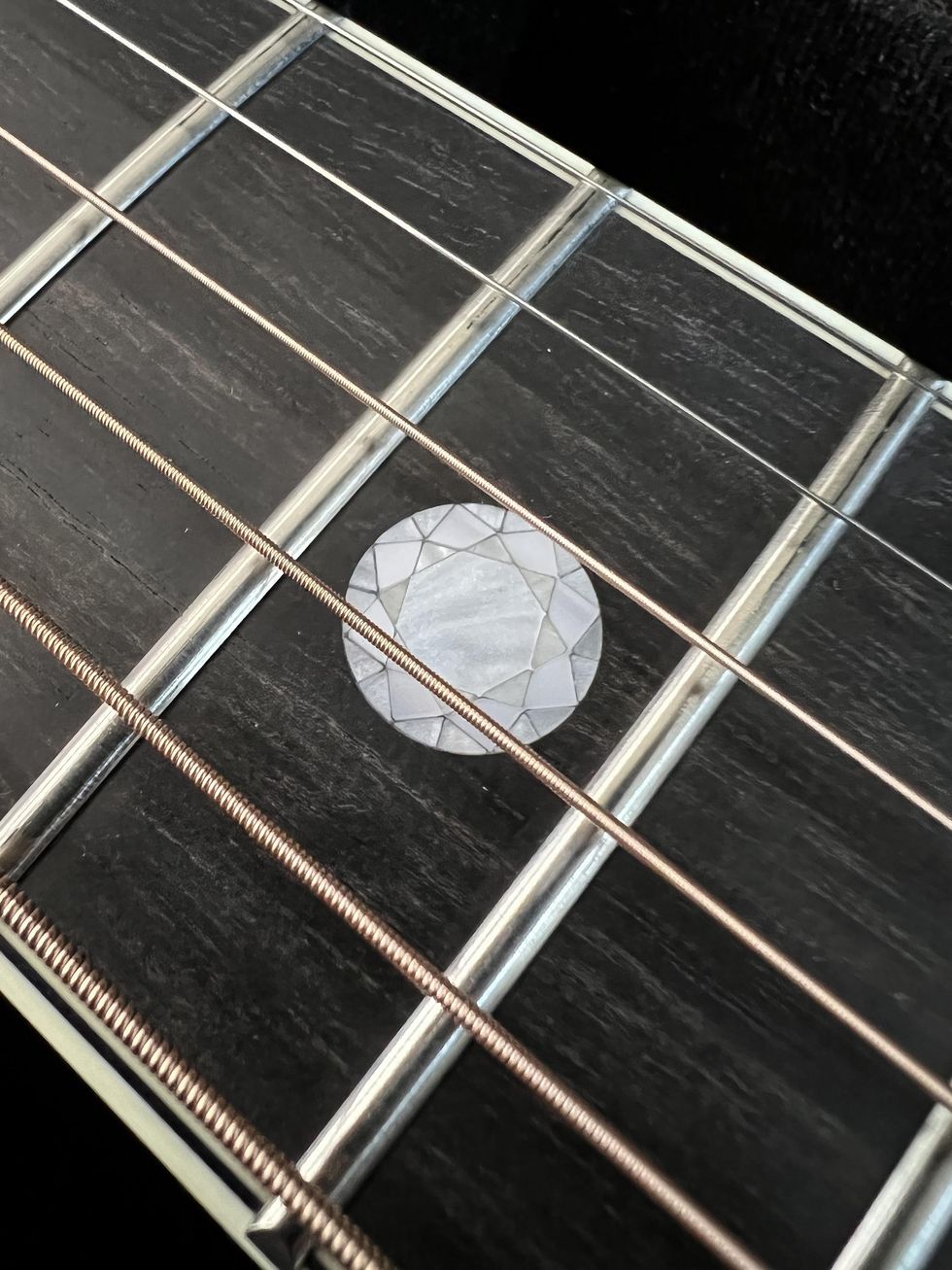 A brand new CTF-2N preamplifier comes with the LTD2022. This FET preamp revives the warm, dynamic sound of Takamine’s early FET preamp model, affectionately known as the “Brownie”. The CTF-2N has that legendary sound, while adding the modern functions of a chromatic tuner and a versatile notch filter. To honor the landmark 60th anniversary of the company, the LTD2022 features a diamond-shaped inlay on the 12th fret. The guitar is also adorned with abalone purfling and matching rosette. The position markers feature a colorful abalone circle-within-a circle motif.