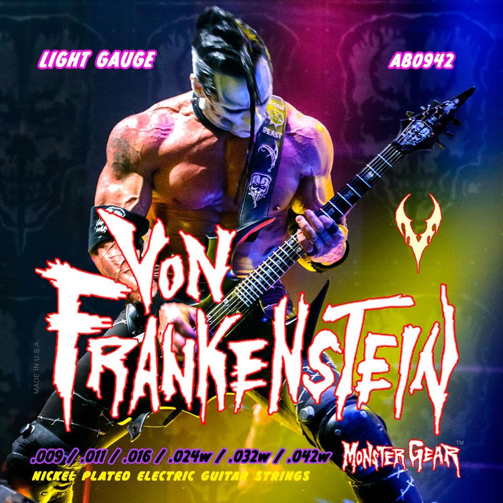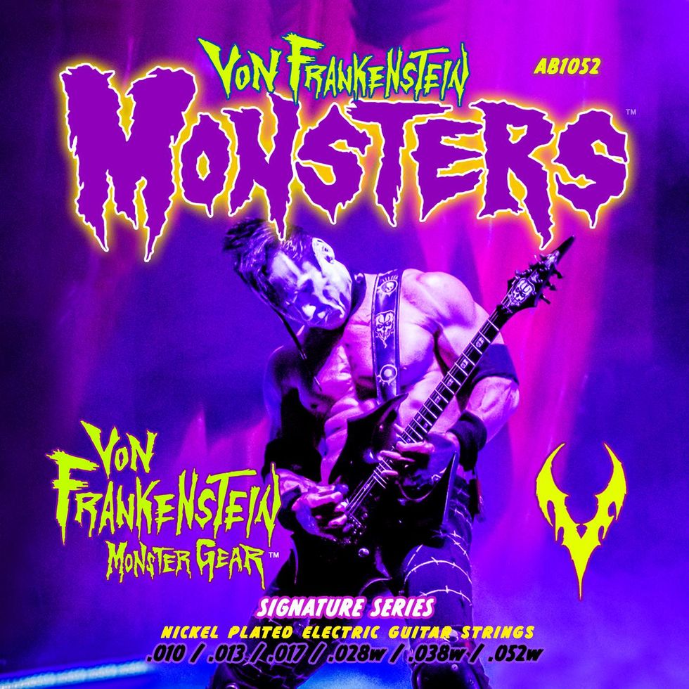 Von Frankenstein Nickel Plated Electric Guitar Strings are vacuum sealed individually in anti-corrosion bags with gauges clearly labeled for easy identification, an especially helpful feature for working guitarists. In addition to the traditional gauge sets, the Von Frankenstein line will include three sets of actual signature sets that Doyle uses personally. His Abominator set is made up of gauges .010/.013/.017/.028/.038/.060 and used almost exclusively with his band, Doyle. The Decapitaters (.010/.013/.018/.030/.042.065) and the Monsters (.010/.013/.017/.028/.038/.052) are used for performances with the Misfits.