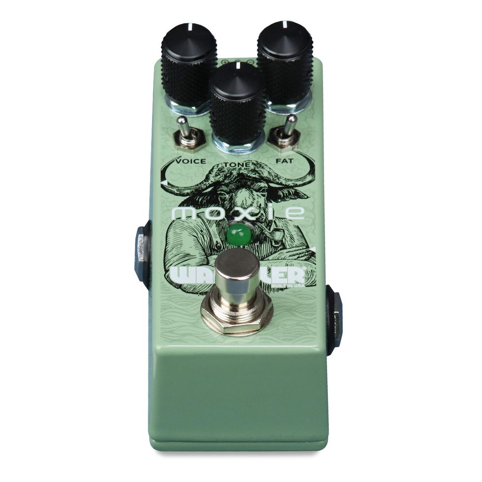 Capable of anything from light boost to a gritty drive that can send an amplifier into heavily overdriven tones, the Moxie is designed to be an ultra-flexible, wonderfully warm and rich pedal but with an extra bite. In addition to the standard controls, Brian has added two unique switches. The Voice switch adds clarity by changing the entire EQ associated with this design giving it a more transparent yet robust tone. The Fat switch adds an extra dimension of gain with a custom MOSFET clipping stage, reminiscent of a classic high-end boutique amp.