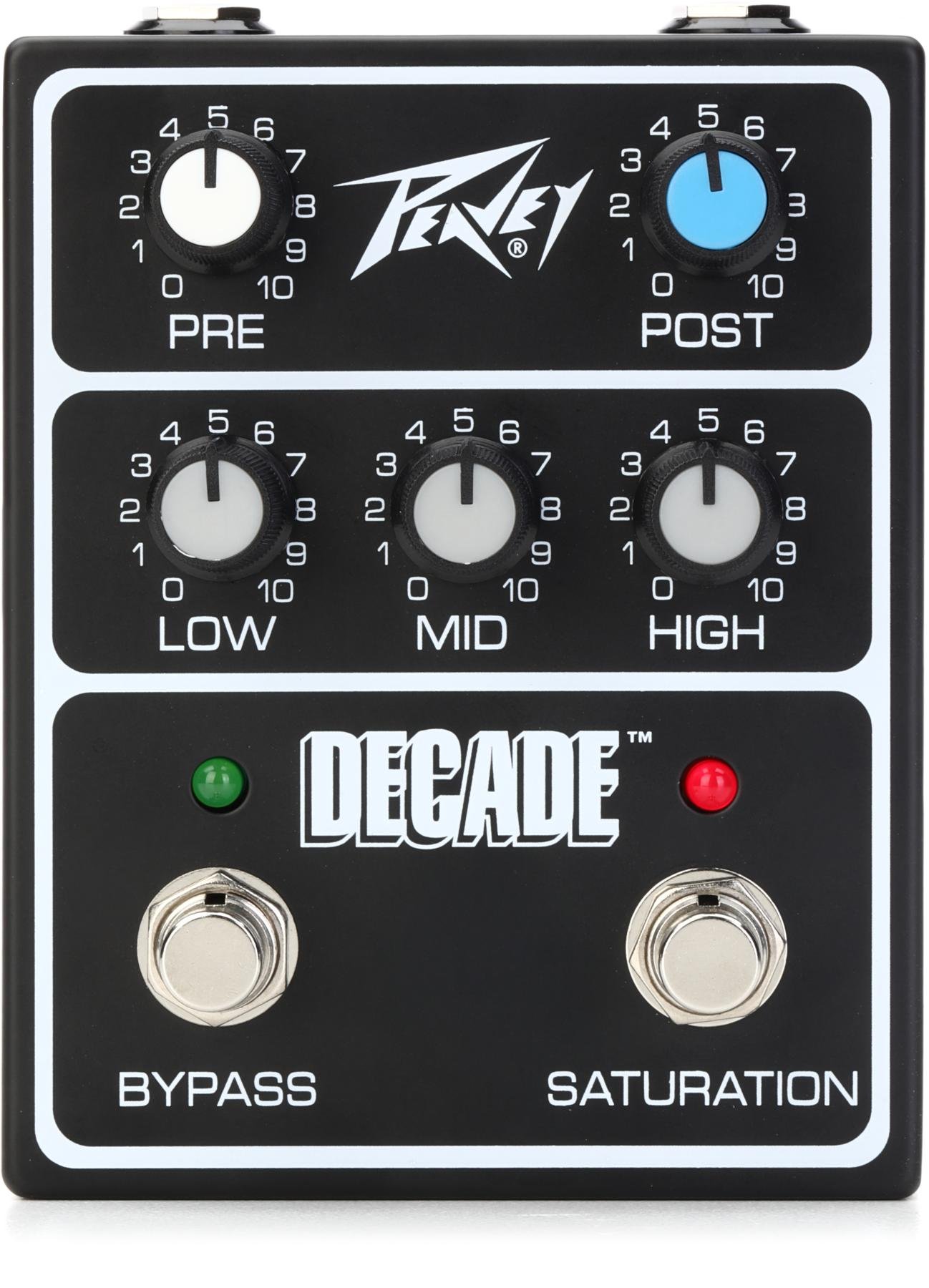 Guitar players will find a single input, single output preamp pedal straight forward and easy to navigate. Faithful to the original Decade circuitry (circa 1980), the control layout will be identical to the original amplifier. The GAIN section features PRE and POST controls. PREGAIN sets the gain of the input circuitry. POST GAIN sets the gain before the out. Built off the legendary Peavey Saturation patent, the new, switchable SATURATION allows tube-like sustain and overload at all volume levels, suitable for bedrooms, rehearsals, stadiums and apparently, those very expensive recording studios. The traditional BASS, MID, and HIGH equalization controls provide the tone shaping enhancements any guitar should require. Upgraded pedal features include an internal 24v supply from the standard 9v supply/battery and worldwide EMC/FCC compliance approval.