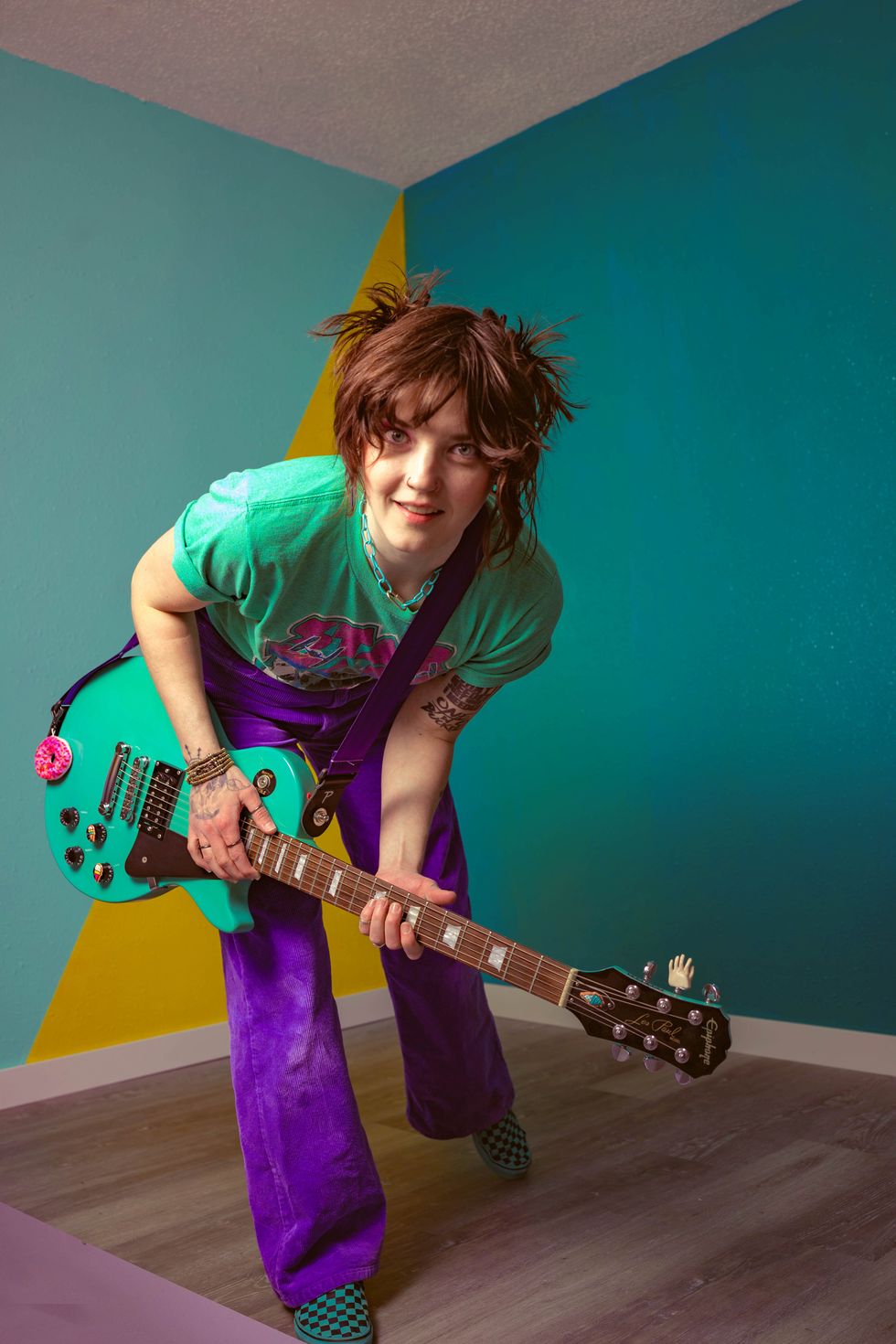 A: My favorite guitarists do this thing that makes my mouth hang open in a half-giggling grin when I see it live. It’s one of the best sensations, and it corresponds to that thing—maybe it’s a front-and-center lead, or a new tone they kick on, or a chord voicing they reach for—that elevates the band to a level of euphoria that escapes description. With some little bit of how they manipulate the instrument, they create a totality of experience, even for a few seconds, that’s perfectly in tune with all the other elements around it, and feels like it makes all the cells in my body vibrate with excitement.