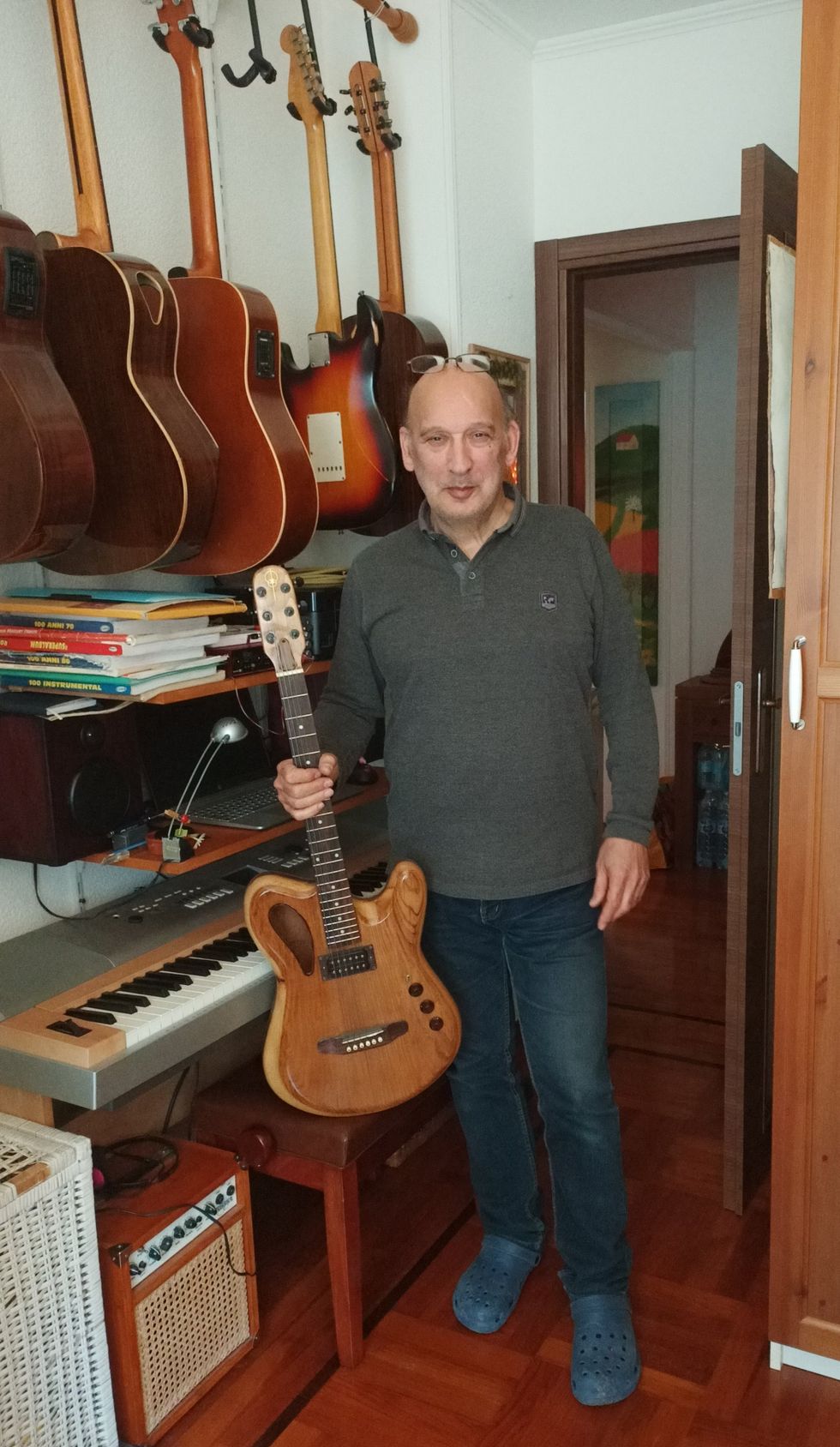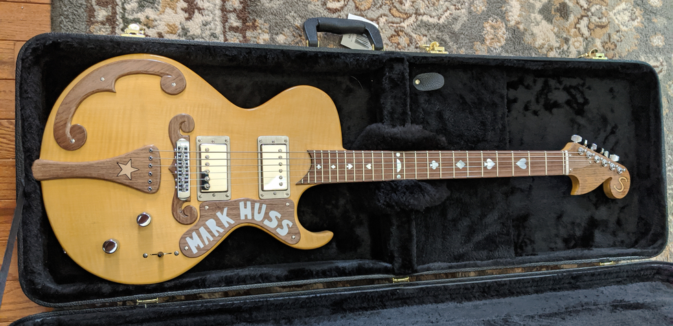 When I opened the case, I was blown away by the finished guitar. The Wizard traveled on the road with me playing gigs all over Wisconsin for more than a decade. Sidenote: Chris wanted to inlay a dragon in the headstock, made to look like the wizard was firing fireballs at it, but he ran out of time. I have no idea what ever happened to Chris, or if he's still building awesome lutes. My dear friend Ed Roman since passed away, but this beautiful guitar lives on!