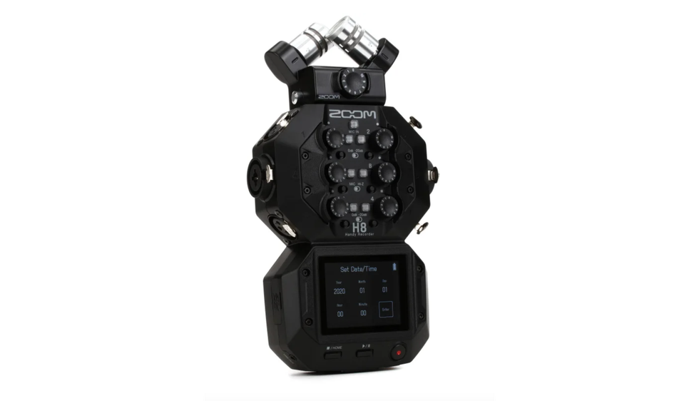 This feature-packed recorder has 12 tracks, can be used as a USB interface, and records 24-bit/96 kHz audio. The H8 has two XLR/TRS inputs and four XLR inputs, and four mic preamps with phantom power. It can be bus-powered, battery-powered (four AAs), or you can use a power adapter. Onboard is an XY mic attachment with interchangeable capsules—and these capsules sound fantastic. The software has three setups for operation: field, music, and podcast, and each is optimized for those types of recordings. Other features include an automatic backup record, a six-second pre-record function, a built-in compressor and limiter, a metronome, and a speaker for playback. Tracks are recorded to an SD card.