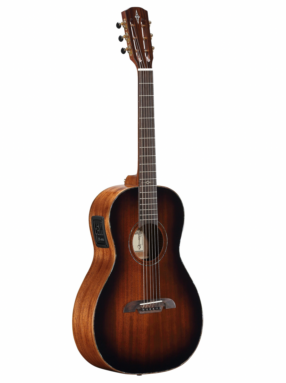 This modern parlor comes with your choice of a solid spruce or solid mahogany top, with solid mahogany back and sides, and Fishman Sonitone Plus electronics.