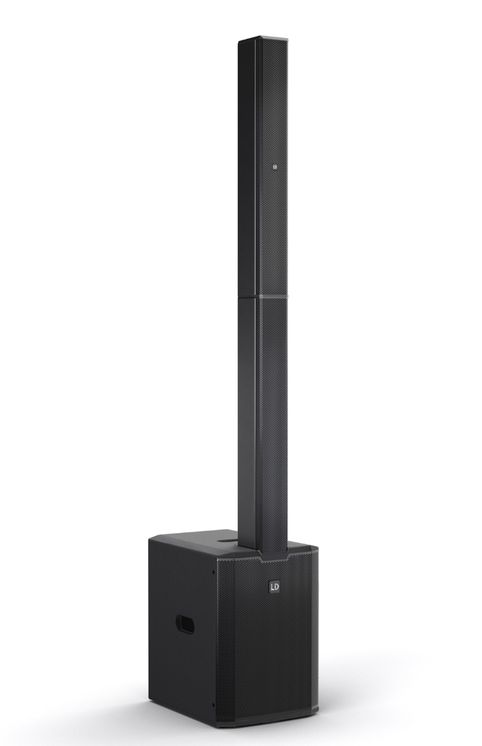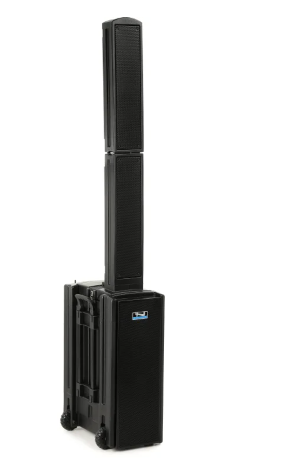 This portable PA, with a peak output of 1,300 watts , features a 10" LF driver and a 6x2" column array, a 6-channel mixer, and Bluetooth/aux inputs. It also comes loaded with reverb options, sound presets, and remote control via an iOS/Android app.